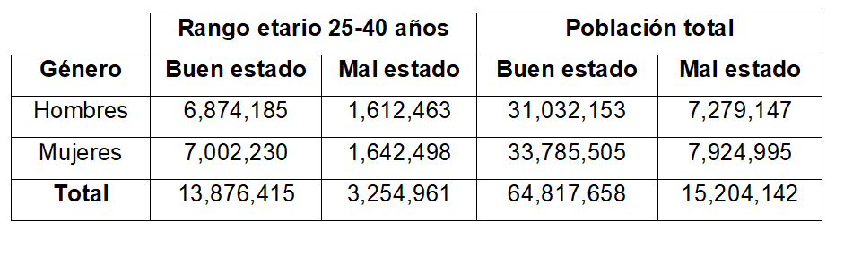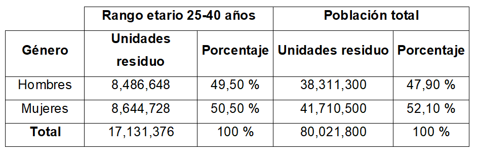 Cuando el residuo presenta un buen estado parcial, es decir, tiene algún defecto recuperable, se realizan las tareas de corrección para convertirlo en un residuo en buen estado total. Si por el contrario, el producto se encuentra en mal estado y no es reparable, se hace necesario incluir otro proceso de clasificación, que consiste en evaluar el tipo de material que compone el residuo. De acuerdo con los datos de la Tabla 4, el residuo no apto para el uso en Bogotá sería del orden de 3,254,961 unidades para el rango etario, y para la población total sería de 15,204,142 unidades por año.