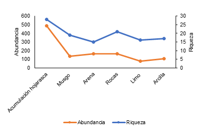 asociados a microhábitats más estables y con mayor acumulación de materia