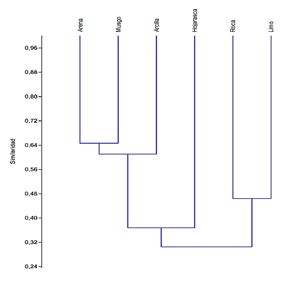 Figura 8. Cladograma de similaridad para los microhábitats reportados en la quebrada La Viuda, Cajibío (Cauca)