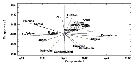 Figura 9. Análisis de componentes principales en la quebrada La Viuda, Cajibío, (Cauca)