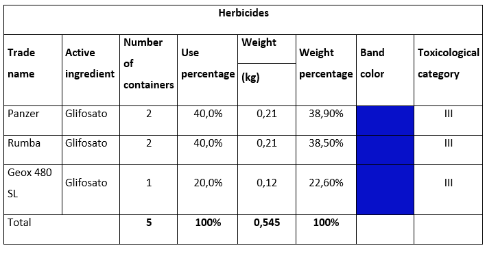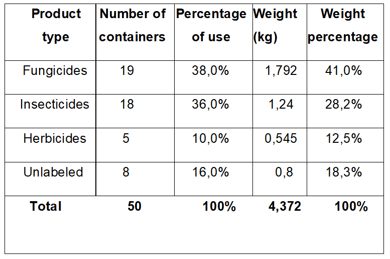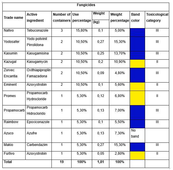 On the other hand, the identification of collected fungicide containers was carried out and is presented in Table 5.