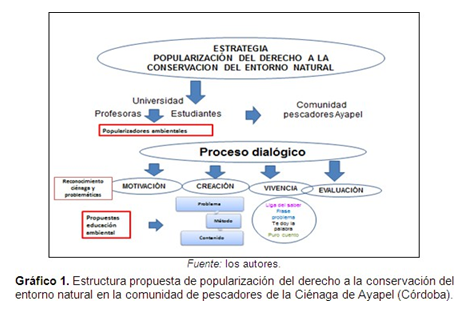 La popularización implica la posibilidad de una participación amplia de las comunidades, lo que garantiza a su vez, la sostenibilidad de los ecosistemas de las localidades, ya que las colectividades pueden identificar y proponer las prioridades de gestión y las acciones urgentes sobre los recursos, además de que se generan procesos de identidad cultural frente al entorno inmediato y se fortalecen los grupos y organizaciones comunitarias existentes en el área de los ecosistemas. Es así, como luego de caracterizar el entorno rural en la Ciénaga de Ayapel y de conversar con los pescadores, se diseñó una propuesta de popularización del derecho a la conservación del entorno natural, articulada desde la pedagogía dialógica y la didáctica universitaria, y donde se consideran tres ejes fundamentales: