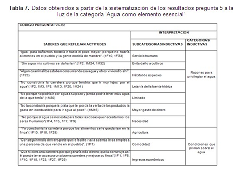 pozo de agua. En la Tabla 7 se resumen las actitudes de los participantes frente al agua y al dinero como factores necesarios en las actividades humanas.