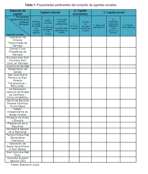 En este contexto surgió la siguiente pregunta que orientó el proceso de investigación: ¿Por qué en el municipio de Marmato (Colombia) se están generando conflictos territoriales y patrimoniales entre la visión de desarrollo neo- extractivista frente a la visión de desarrollo local? Para tal efecto se identificaron los discursos y estrategias, por un lado, de los agentes transnacionales y gubernamentales para legitimar su visión de desarrollo neo-extractivista y el megaproyecto minero (primer objetivo); y, por otro lado, de los agentes comunitarios para legitimar su visión de desarrollo local y defensa de la minería tradicional (segundo objetivo). Por último, se construyó el espacio social de los conflictos territoriales y patrimoniales en el territorio de estudio (tercer objetivo).