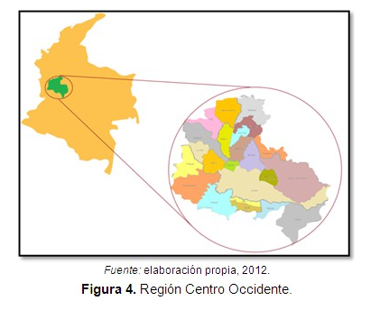 La Región Centro Occidente es percibida dentro de la Ecorregión Eje Cafetero como parte del sistema de áreas naturales protegidas, como integrante de las cuencas hidrográficas articuladoras y como parte de la red de ciudades que se estructuran alrededor de los procesos de metropolización y de integración que circundan a las ciudades de Armenia, Manizales y Pereira (Arango, 2008).