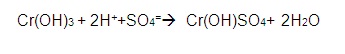 La reacción química entre el hidróxido de cromo, los iones hidrogeniones del ácido suministrado y los iones sulfato del sulfato de sodio, para producir la sal sulfato básico de cromo es: