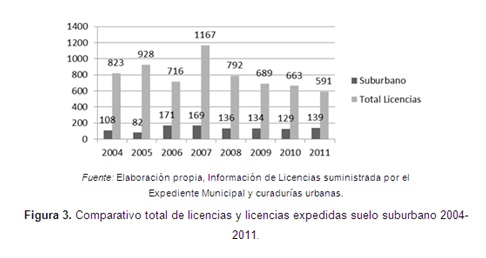 un área inferior a 2 hectáreas (Unidad mínima de actuación, Decreto 3600 de 2007), el 23% (1.200 predios) son predios menores a 1500 m2, con un promedio de 845,8 m2. En el año 2006 las licencias urbanísticas otorgadas en el suelo suburbano equivalen al 24% del total del licenciamiento del municipio, adicionalmente presenta un promedio constante de 134,5 licencias año, mientras que el licenciamiento a partir del año 2008 en el resto del municipio ha bajado considerablemente. (Ver Figura 3).