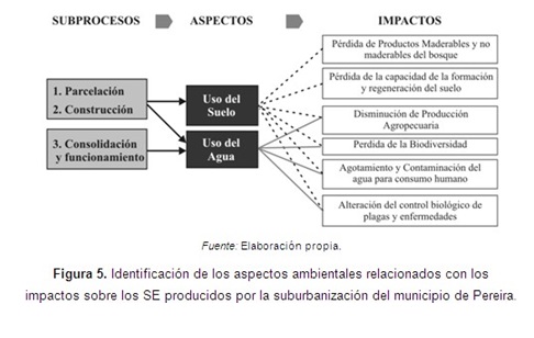 This article presents a research project synthesis about the problems associated with the current suburban land use model of the municipality of Pereira (Risaralda). The research was conducted under the hypothesis that this model generates a negative environmental impact and progressive deterioration of the Ecosystem Services (ES) which implies the loss of territorial capabilities for the maintenance of the population welfare.