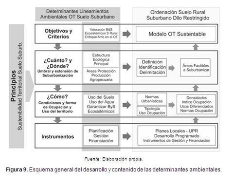 Methodologically the study is developed under a mixed approach, linking qualitative and quantitative analysis tools which allowed identifying the most representative impacts about ES and the common aspects to these impacts. Subsequently the identification of structural causes behind the current model of suburbanization was carried out. The analyses performed allowed reaching the definition of a territorial environmental planning proposal in order to ensure sustainable suburban ground occupation by means of the identification of some sustainability principles and environmental determinants for this type of ground, understood as a set of directives, guidelines and policy proposals to address the way to use and occupy the suburban land searching for its sustainability and where the identified planning, management and financing instruments allow them to be operational.