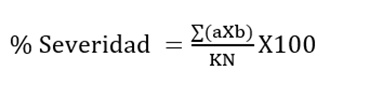 Donde: S=severidad, a= Grado de la escala, b= Número de plantas con un grado a de la escala, K= Grado máximo de la escala, N= Número total de plantas muestreadas.
