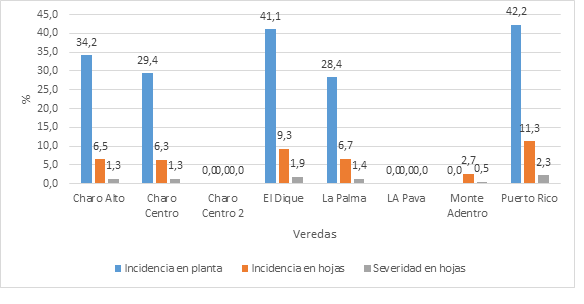 La poca incidencia la enfermedad punta de cigarro puede deberse a que no se presentaron condiciones ambientes favorables en todas las veredas ya que, como señalan Castillo y Jiménez (2020), la enfermedad está ligada a una alta humedad ambiental.