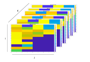 La matriz de pesos es una matriz rectangular WR^J ×I, donde J representa el número de criterios e I la cantidad de índices. Por su parte, el hipercubo de V RI×J ×K, siendo I el número de indicadores, J la cantidad de criterios y K el número de veredas.